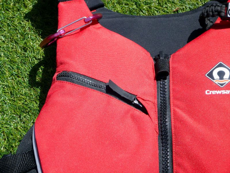 Buoyancy aid showing zip and pocketWhen wearing a buoyancy aid, it should be fitted correctly.