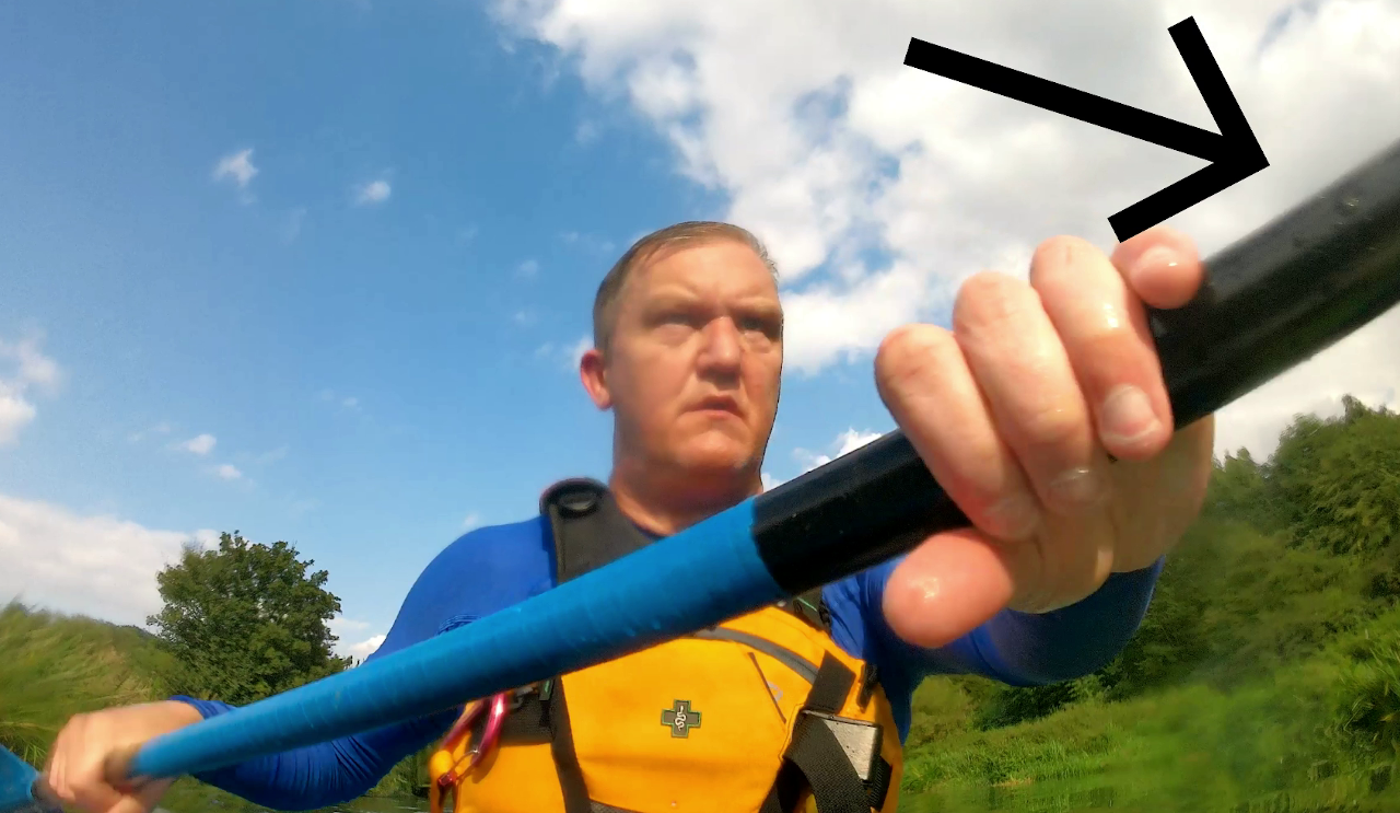 Keeping the paddle shaft here means you are using your shoulders to pull your paddle strokes through. This is far less tiring as your shoulders are much stronger than your lower arms.