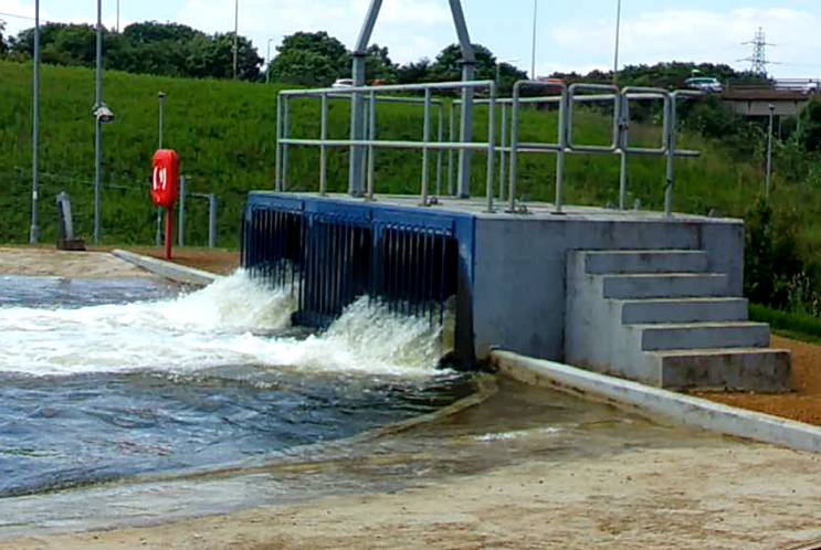 It's the UK's first pump fed course which means water is pumped from the lower river level to the top and then allowed to flow down the course creating the white water rapids.